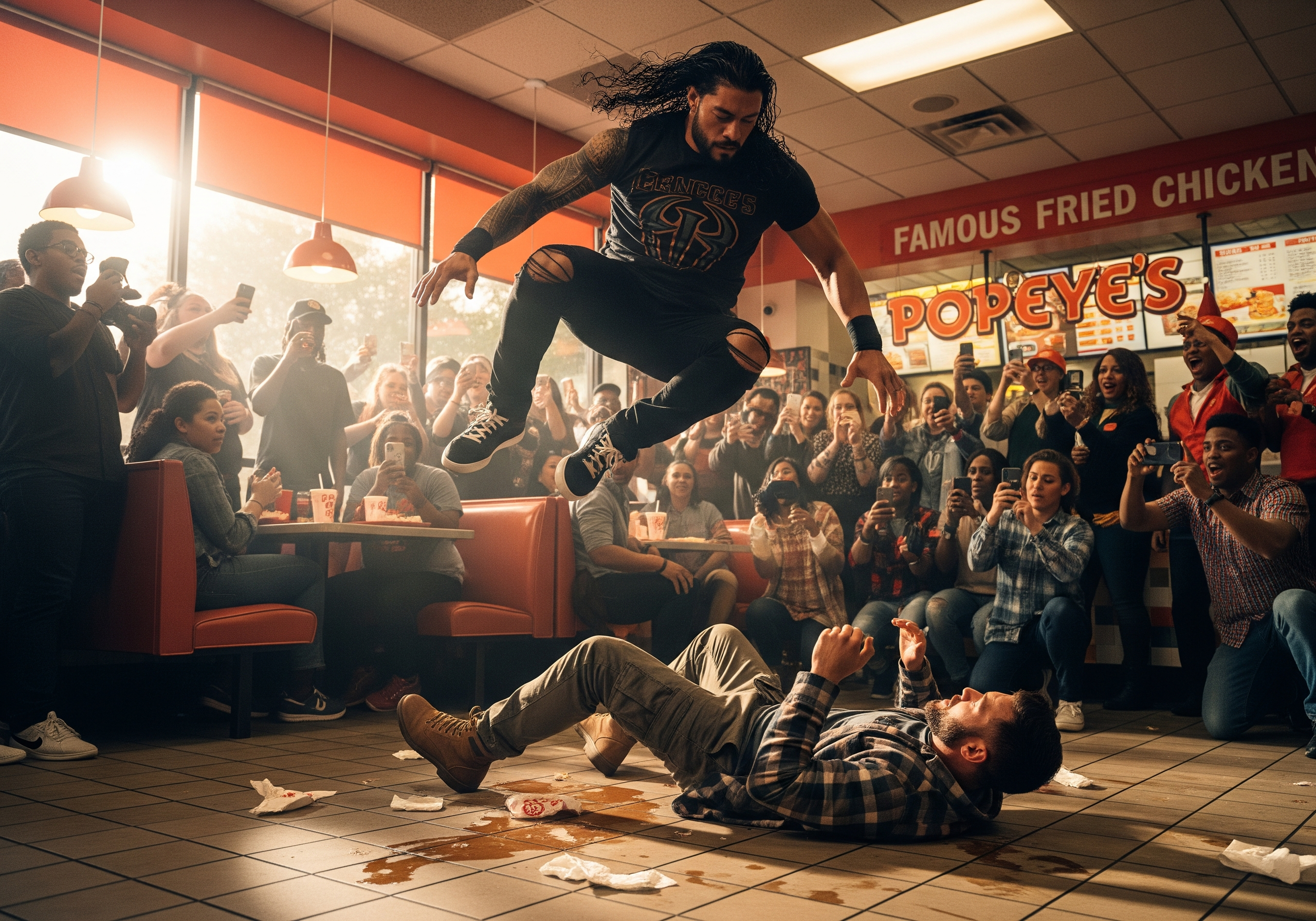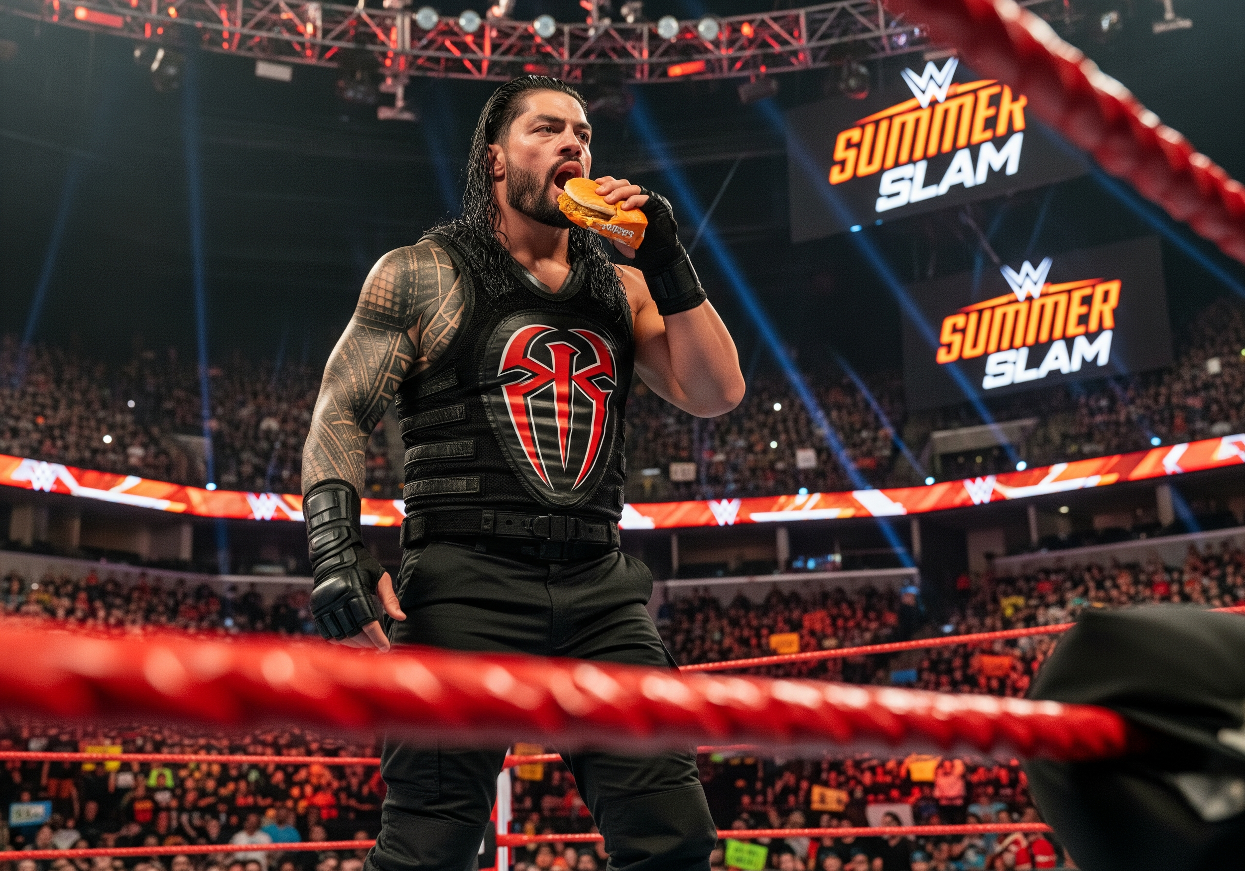 The same wrestlers from the in store confrontation carried the rivalry forward into the main event at WWE SummerSlam. By having the original winner enter the ring eating the last Chicken Sandwich, the idea turned the earlier fight into a continuing provocation rather than a one off stunt. The moment completed the story by connecting a real world encounter directly to a televised match.